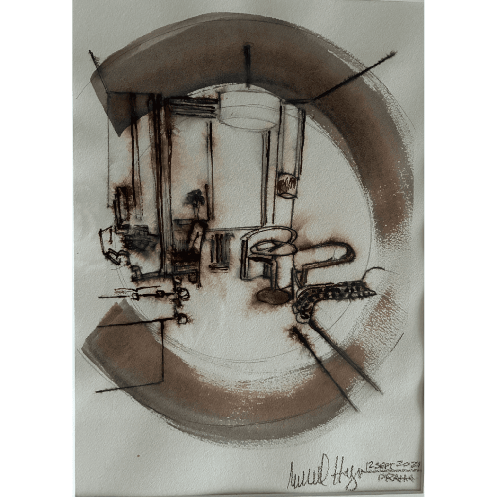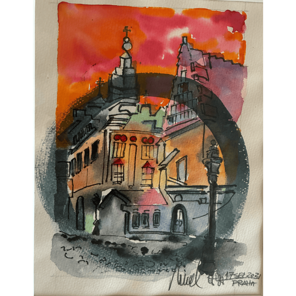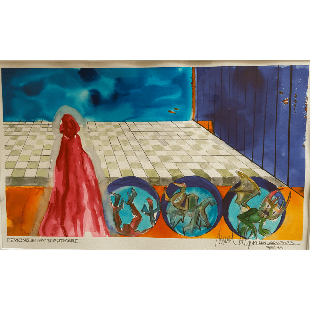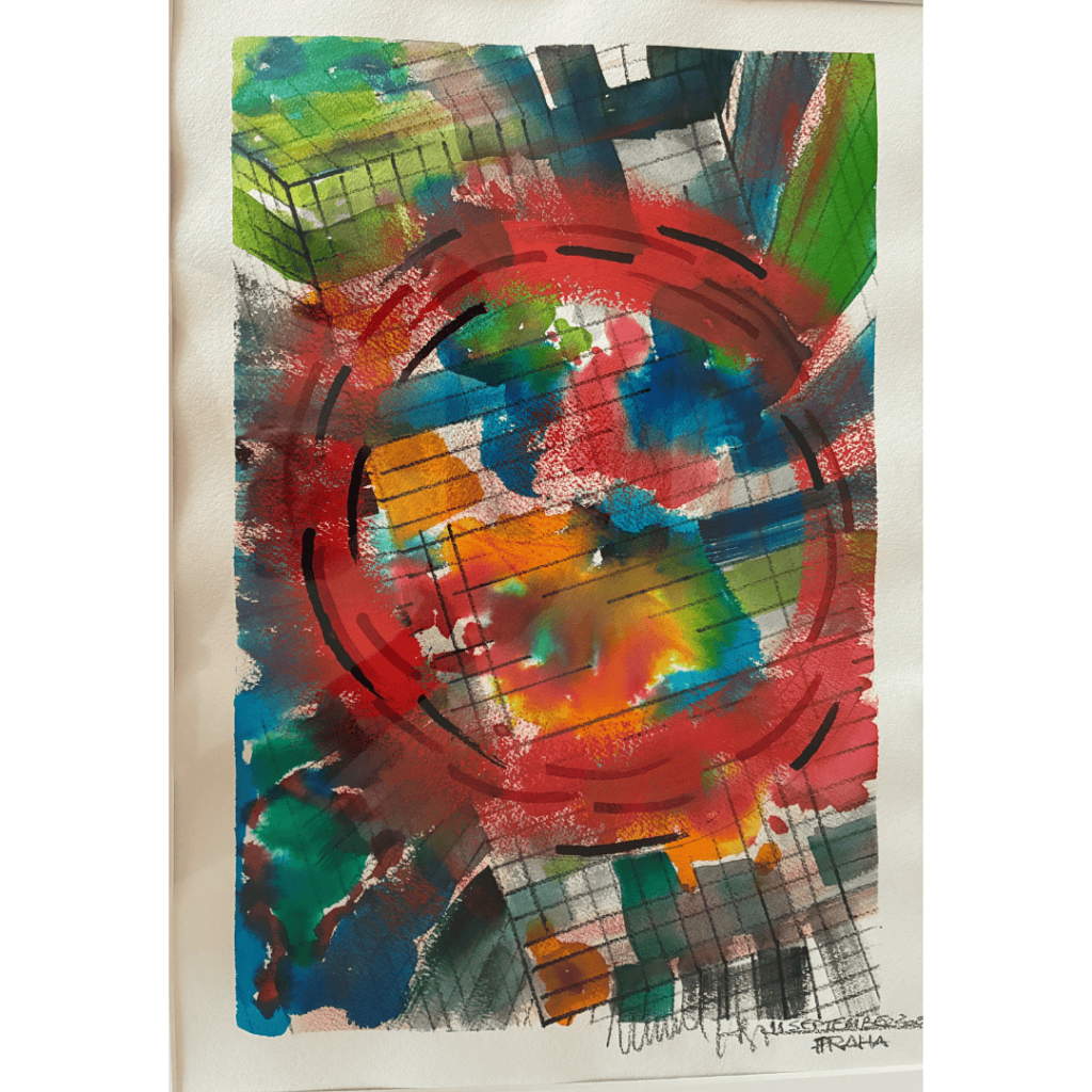 Tato série je pokračováním té cesty. Maluje akvarelem, temperou a kvašem — médiem krásným i neúprosným, které v kombinaci papíru, vody a pigmentu nabízí jedinečné možnosti. Pořád se učí, zkouší a nechává se překvapit tím, co se na papíře objeví.